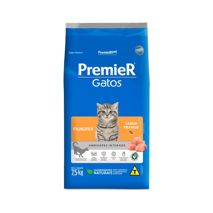Premier Ambientes Internos para Gatos Filhotes Sabor Frango 7,5 KG